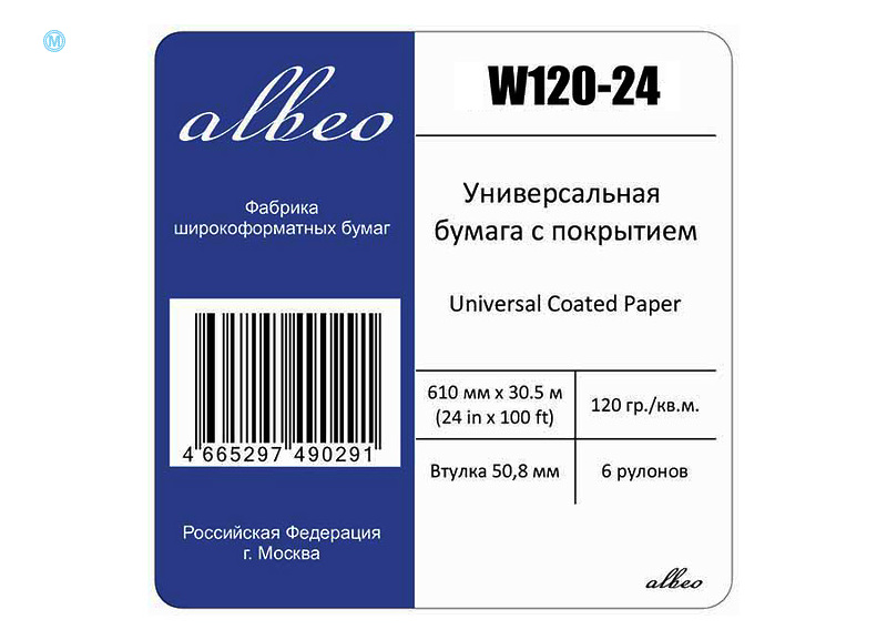 ALBEO W120-24 Бумага универсальная с покрытием, 120г/м2, 0.610x30.5м, втулка 50.8мм