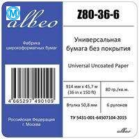 ALBEO Z80-36-6 Бумага универсальная, 80г/м2, 0.914x45.7м, втулка 50.8мм, мультипак, 6 рулонов